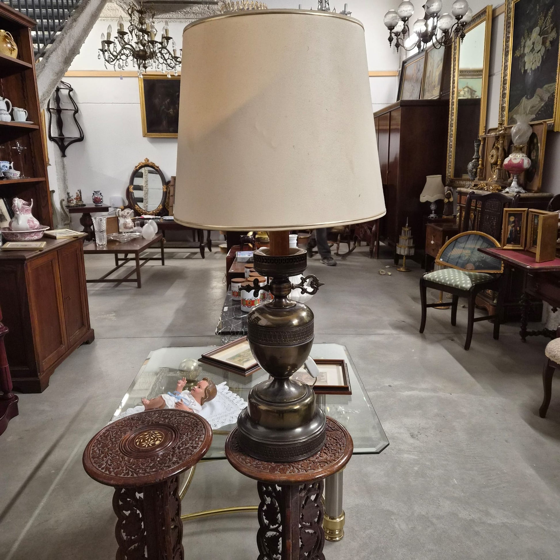 Lámpara de mesa clásica en metal patinado con pantalla textil
