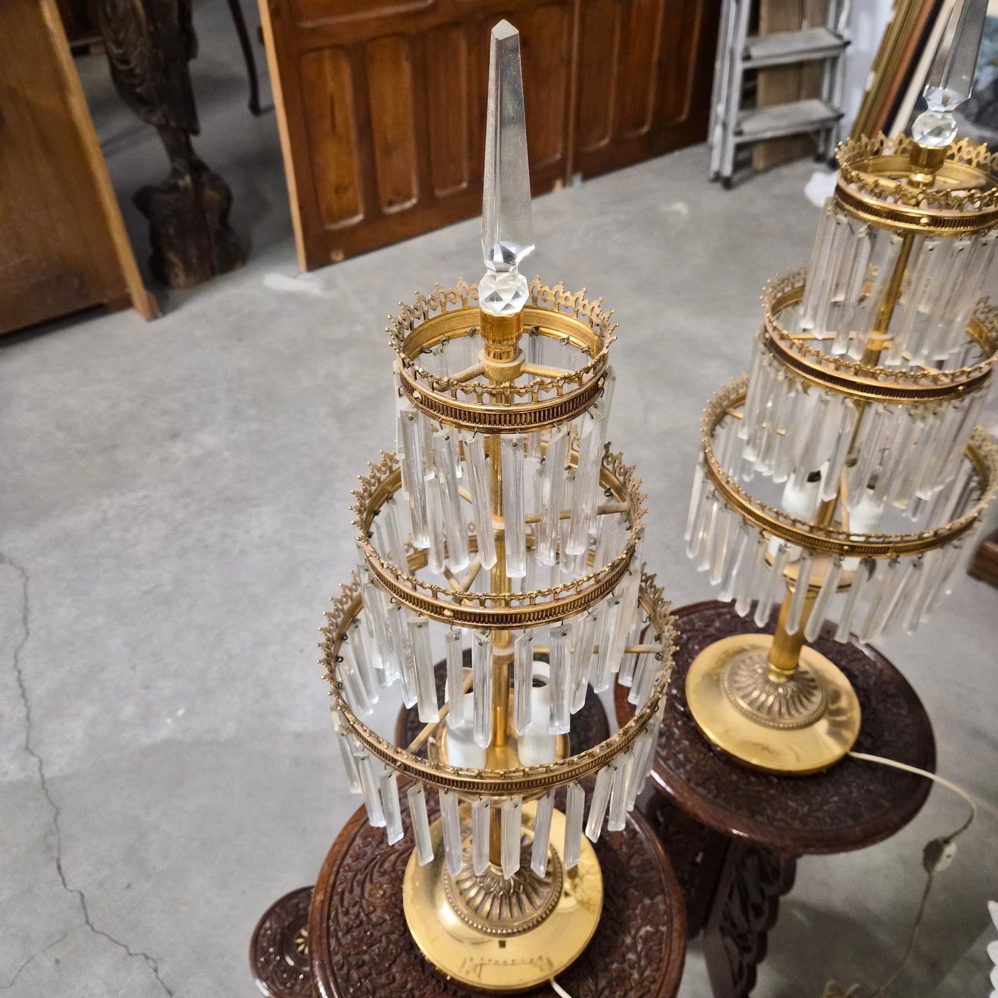 Pareja de lámparas de mesa estilo Imperio con cristales tallados