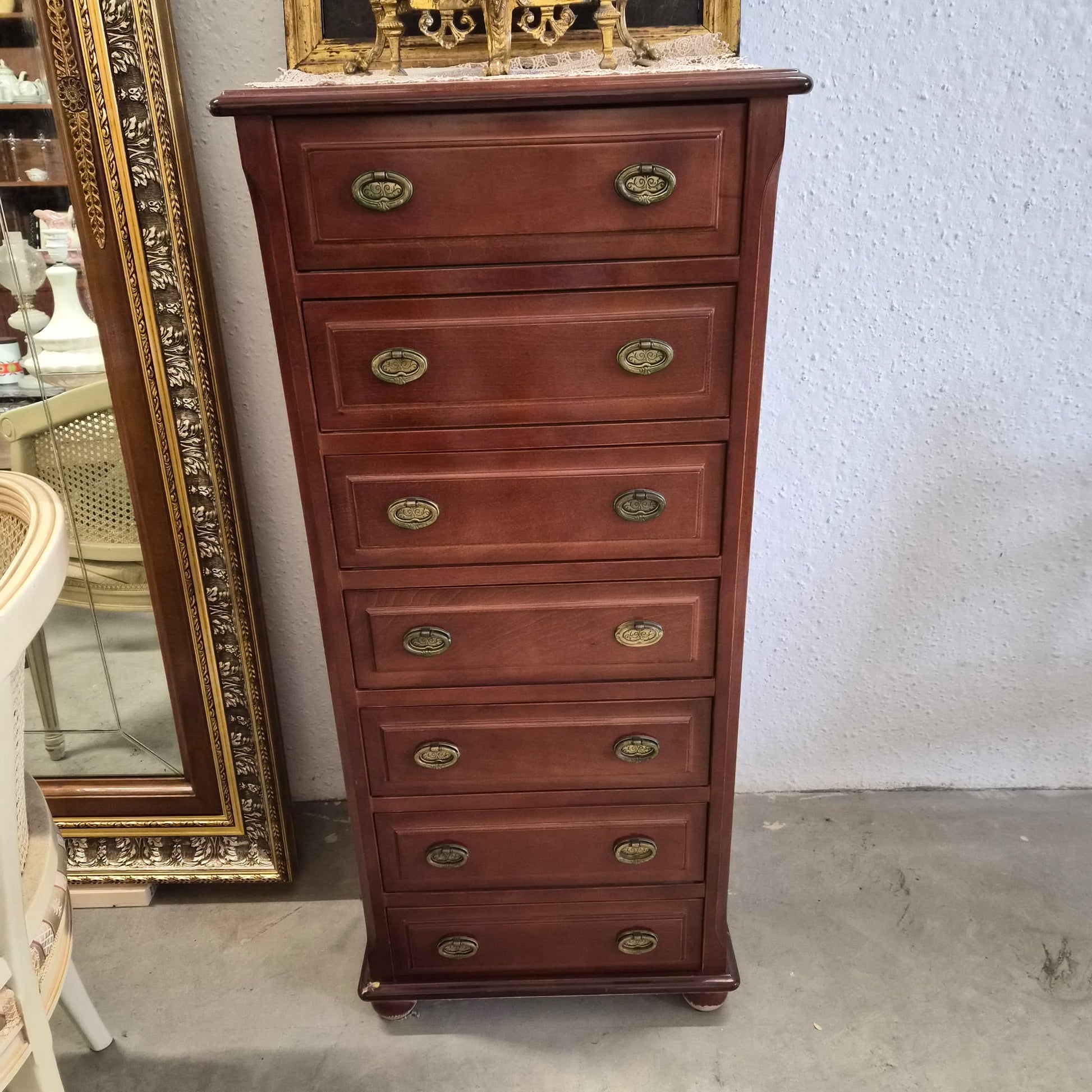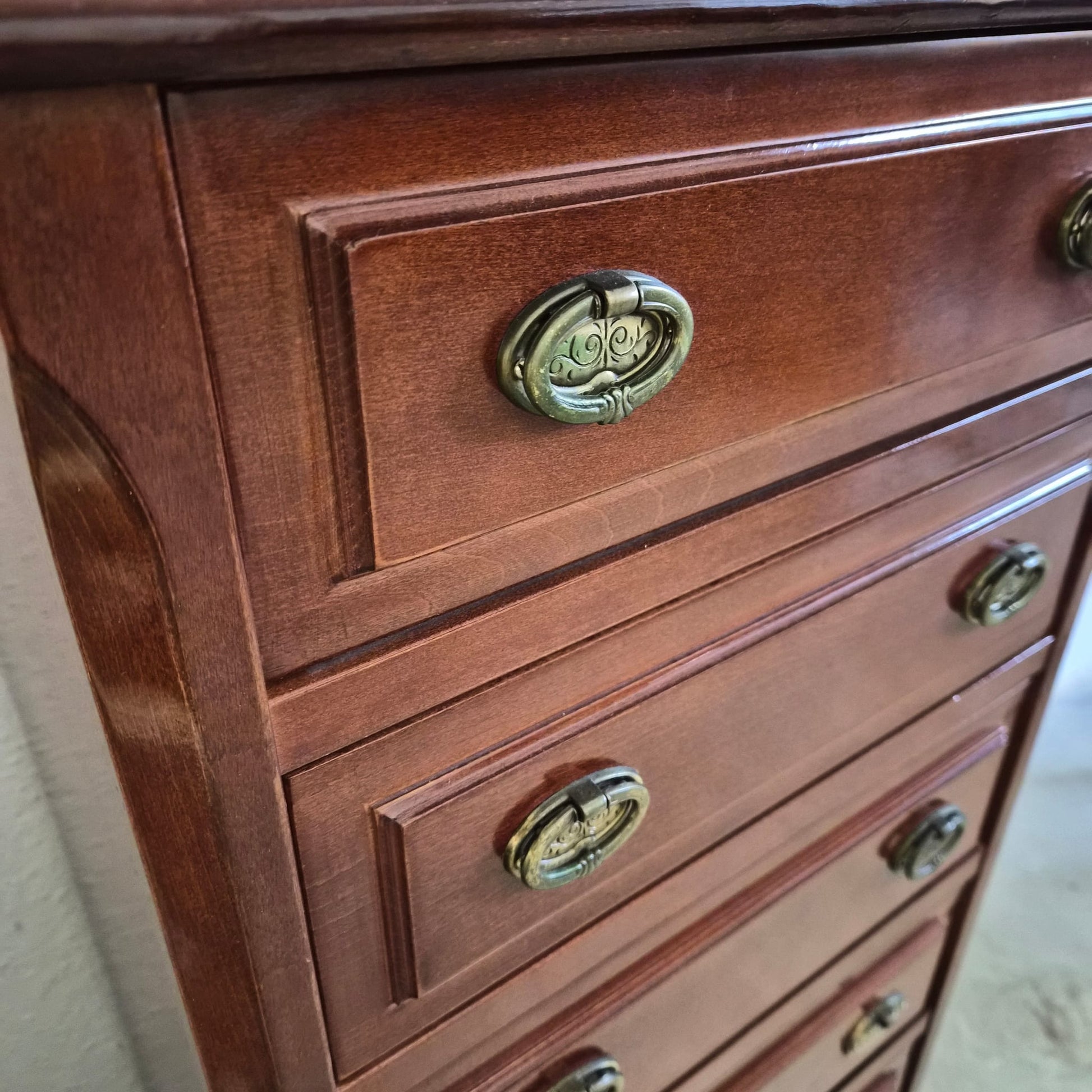 Añade elegancia y almacenamiento extra a tu hogar con este precioso sinfonier de madera maciza, diseñado en un estilo clásico que combina perfectamente con ambientes tradicionales, vintage o rústicos. Su acabado en tono caoba aporta calidez y sofisticación a cualquier estancia.